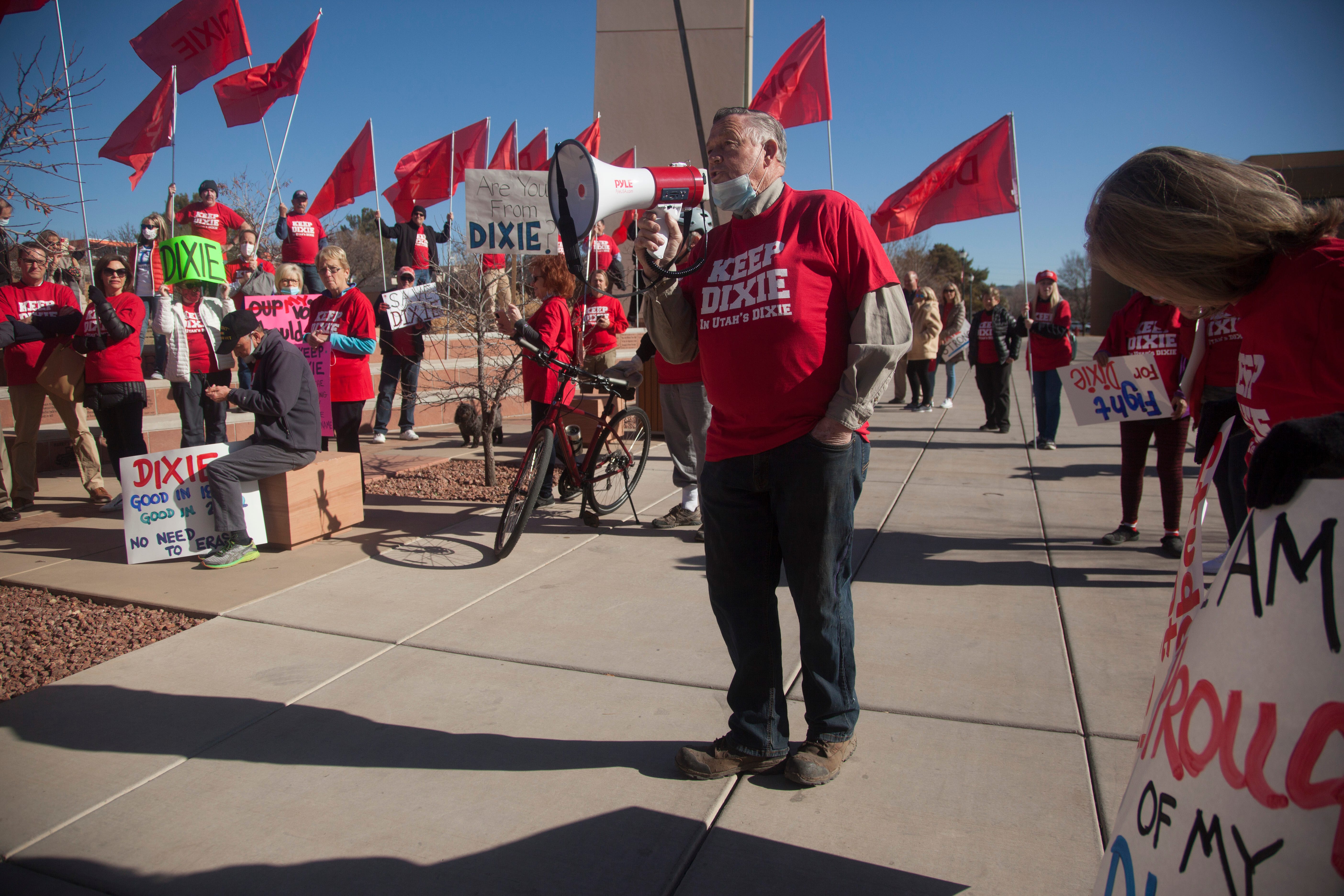Local Crowds gather at Dixie State University to protest potential name change January 10, 2021 Utah Channel 3 Crowds gather at Dixie State University to protest potential name change Original Source